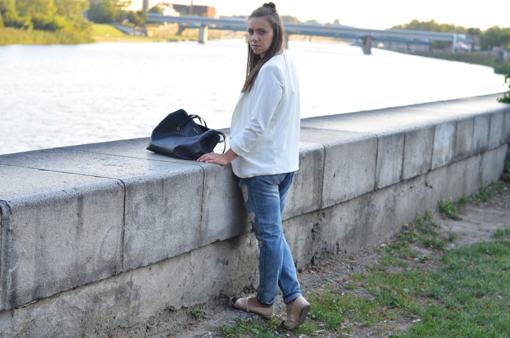 Sylwia wiesz, że ja uwielbiam takie zestawienia! Połączenie marynarki i dziurawymi spodniami to fajny pomysł i właśnie z taką nutką elegancji :-) Co do fryzury to jak najbardziej do Ciebie pasuje i przyznaje, że jest bardzo wygodna ( sama często spinam choć grzywkę, bo nie lubię mieć wszystkich włosów na twarzy, a przy dziecku to już w ogóle trzeba uważać sama wiesz ). W Krakowie byłam bardzo dawno temu 2 razy i bardzo mi się podobało to miasto :-)