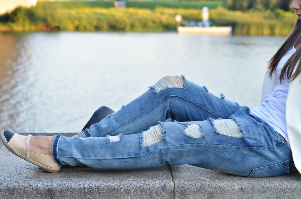 Zestaw, który widzicie, może nie trafić w gusta, bo są dziurawe spodnie. Fryzura na Samuraja i do tego jeszcze biała elegancka marynarka. Moim zdaniem takie połączenie wygląda ciekawie.