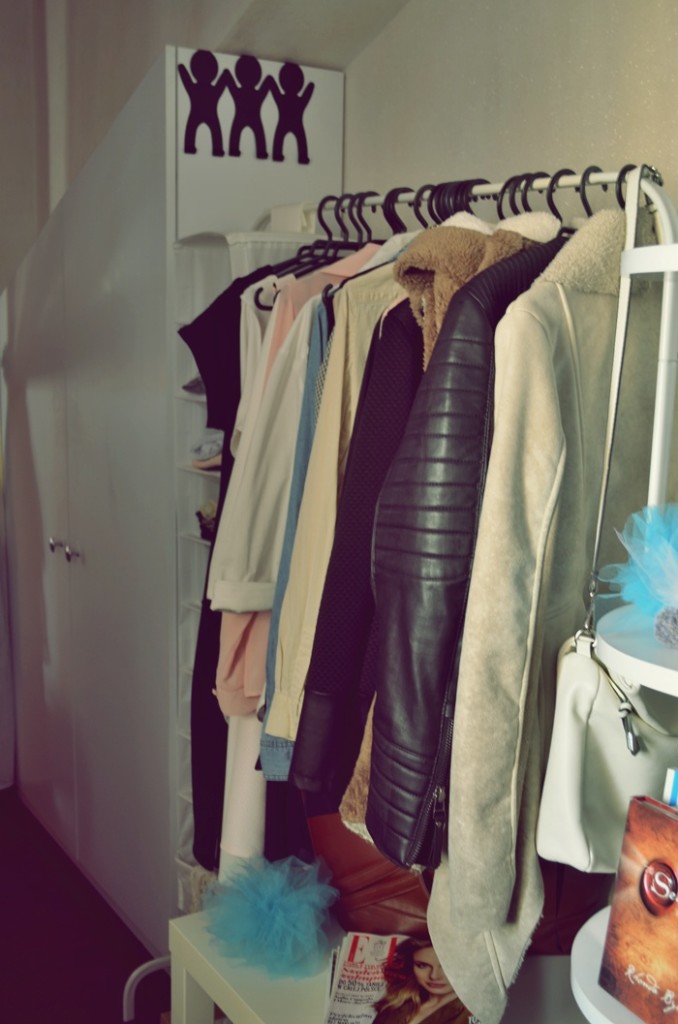 Lubię pod ręką mieć ciuchy , które najczęściej używam dlatego na wieszaku widnieją najpotrzebniejsze rzeczy reszta znajduje się w szafie.