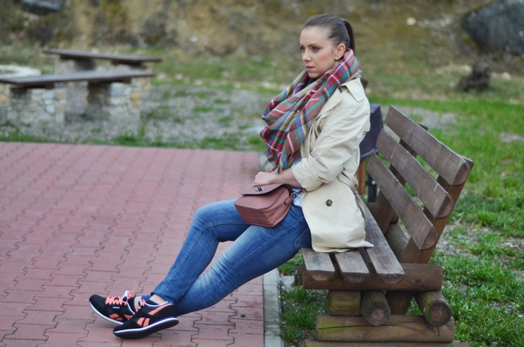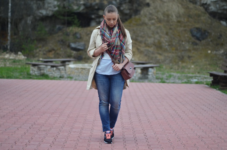 * zdjęcia mój mąż Trencz – No Name|Szal – Sheinside |T-shirt – Cubus |Spodnie – Lee(sh)|Buty – Reebok| Torebka -No Name