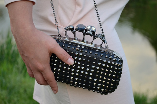 W dzisiejszym secie postanowiłam zaprezentować pudrową tunikę z czarnymi wstawkami z “ala skóry “. Fajnie to wygląda przez co tunika nie jest monotonna i jednolita a urozmaicona w jakiś dodatek. Do całości dobrałam sandały na obcasie w kolorze beżu oraz czerni a jako uzupełnienie stylizacji czarne puzderko w ćwieki , które dostałam w prezencie od wyjątkowej osoby :)