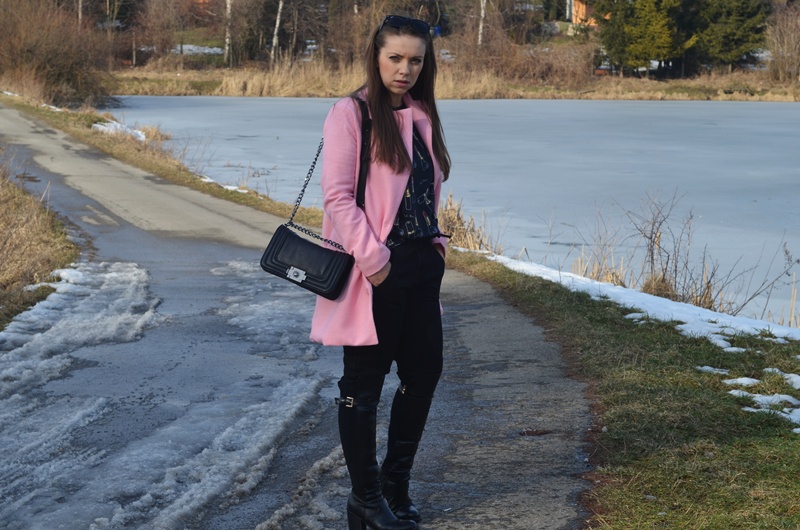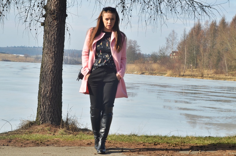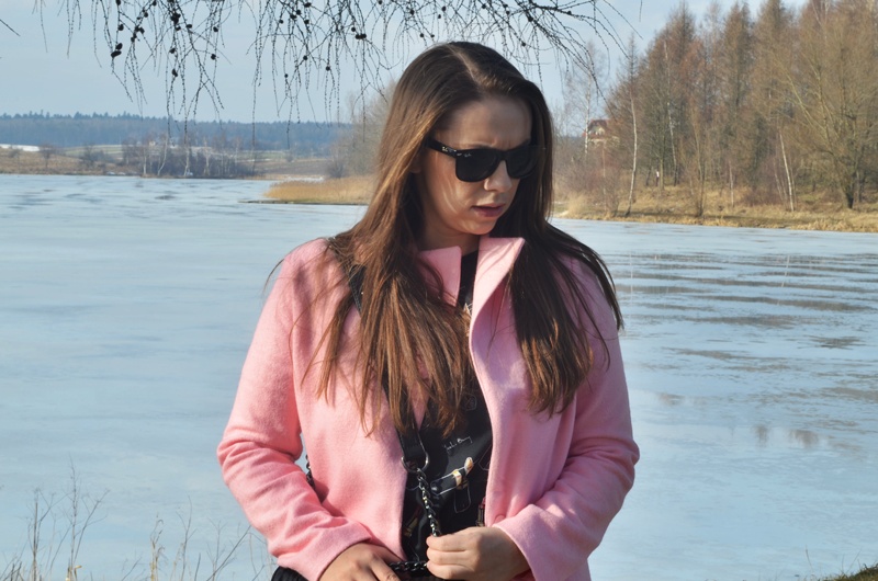 Płaszcz- Sheinside|T-shirt – Yeah-bunny |Spodnie – Zara|Buty – Eilu|Torebka- Nelly|Okulary – RB