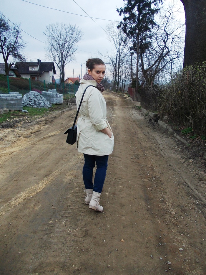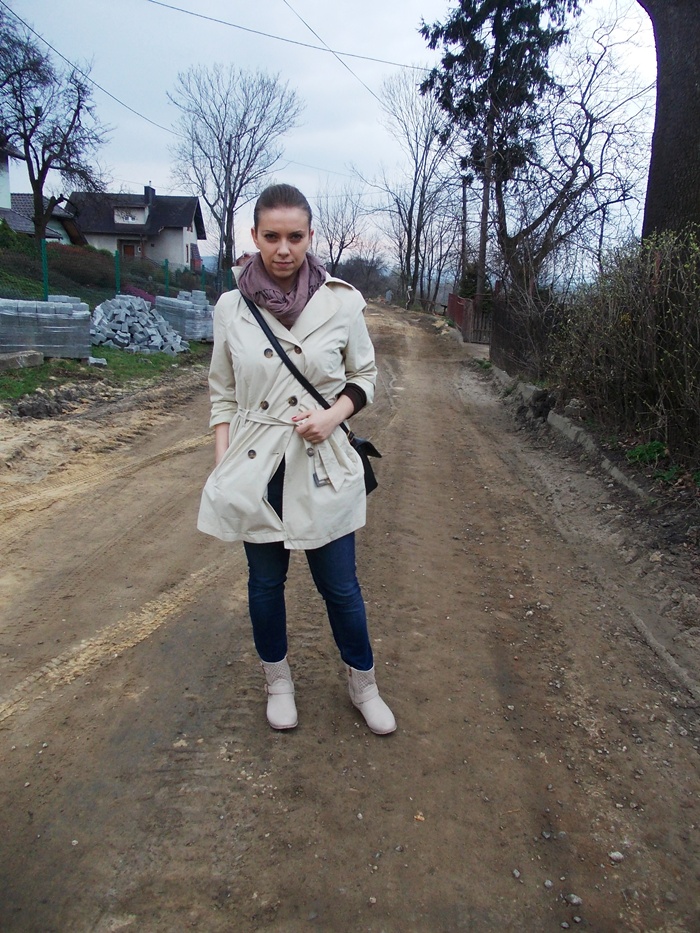 Trencz-NO NAME /Jeansy-ZARA /Botki – NO NAME / Chustka – NO NAME