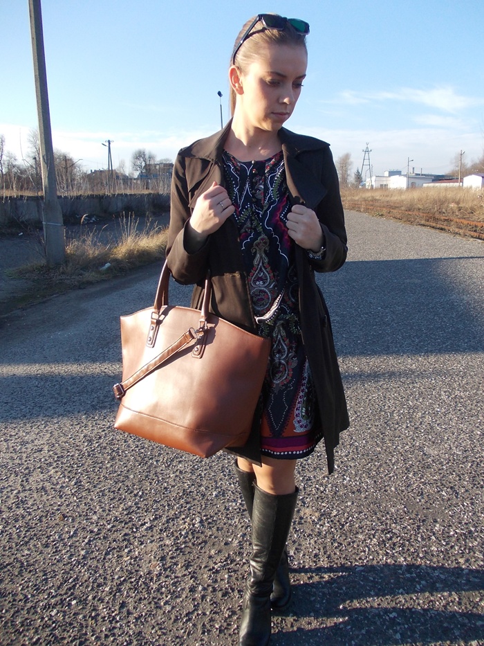 Płaszcz – F&F /Tunika – SH / Torba – ALLEGRO / Okulary – FIRMOO
