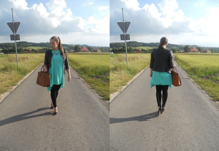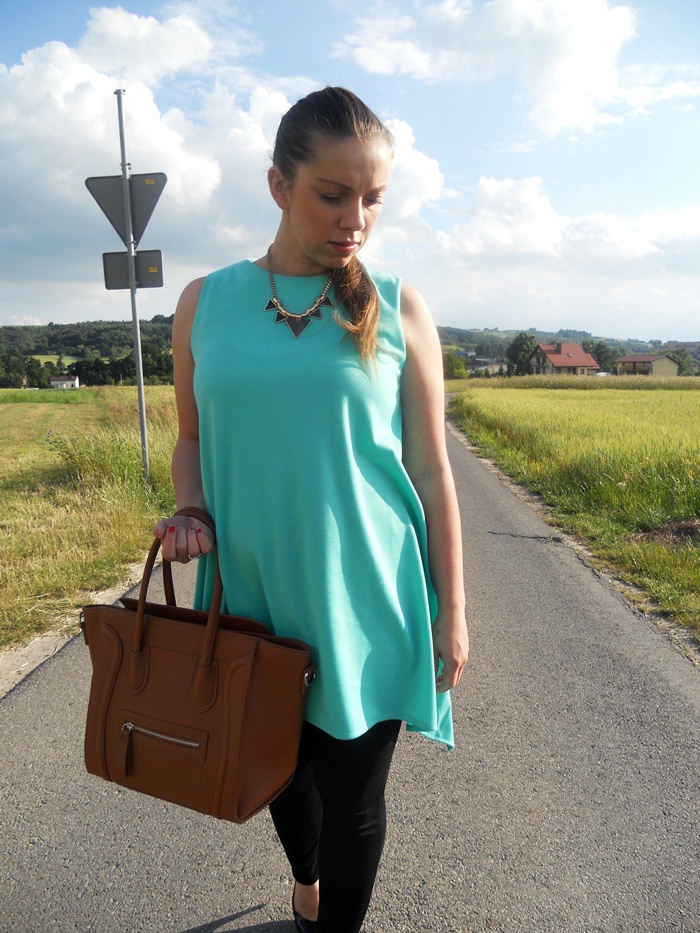 TUNIKA – ALLEGRO / LEGINSY – NO NAME / BUTY- DEASHOP / NASZYJNIK – EDIBAZZAR / TOREBKA – NO NAME / RAMONESKA – NO NAME